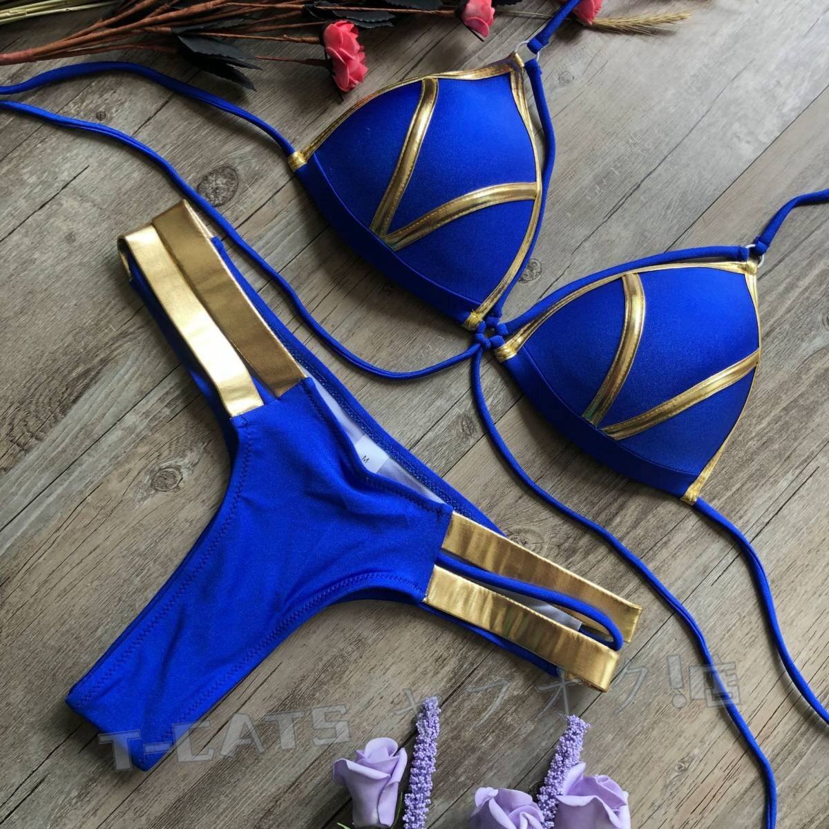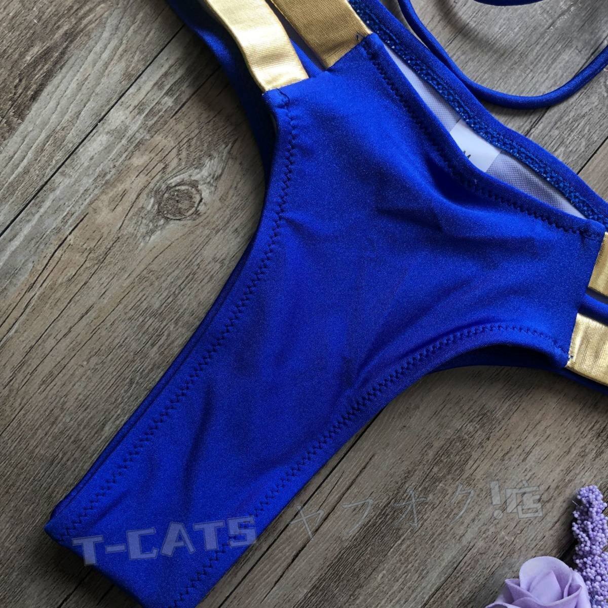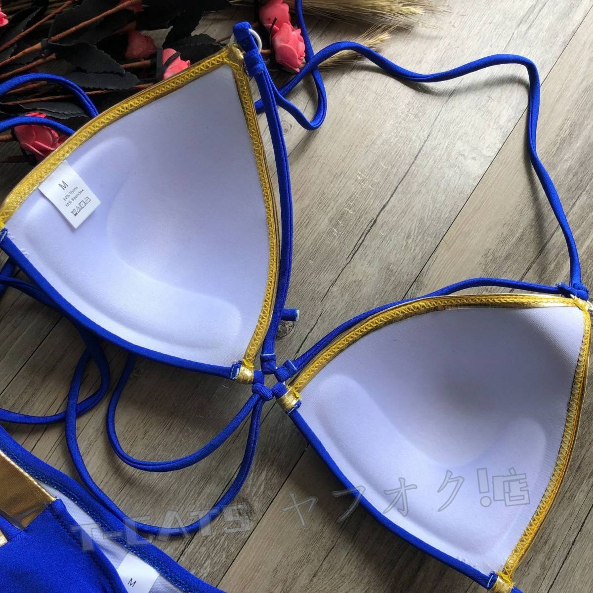 ☆新品 最!上質の超セクシーパッド入り三角ビキニ★光沢.クロス.セパレート.レディース水着.ブルー 【XLサイズ】 收藏