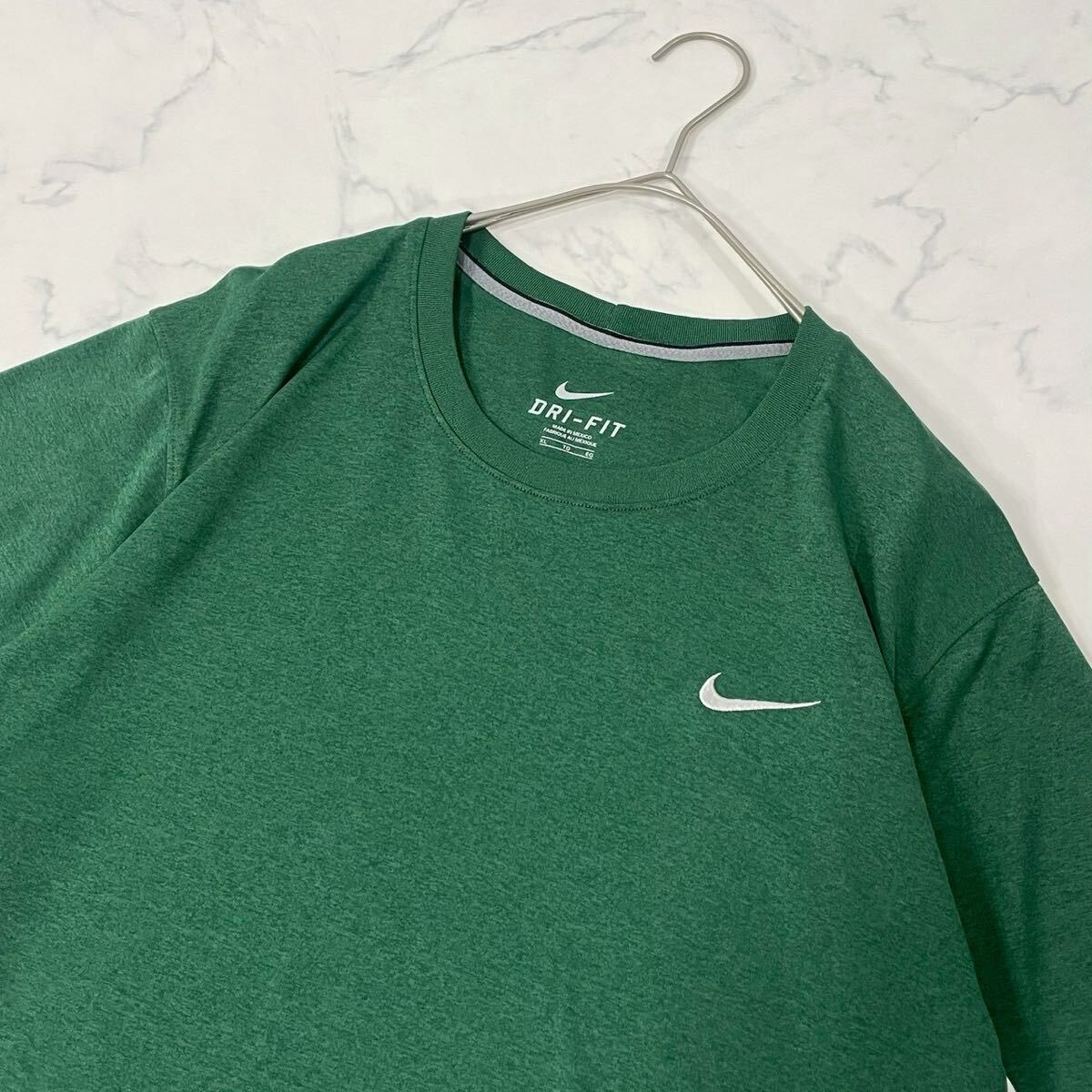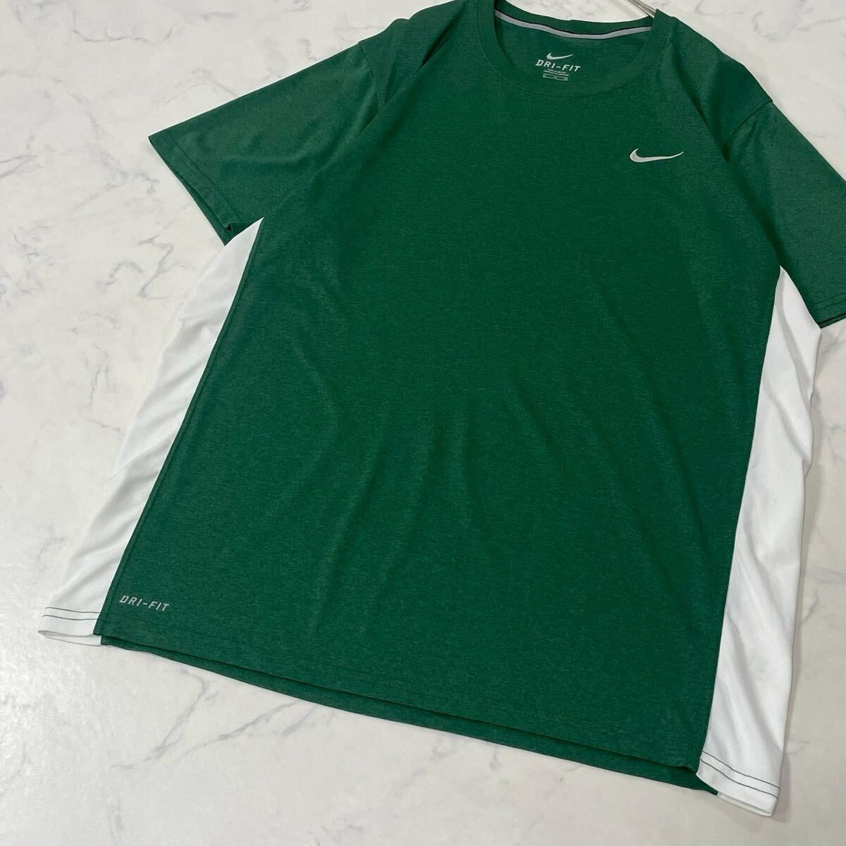 NIKE ナイキ 大きいサイズ 切替 スウッシュ ロゴ プリント リブ クルーネック ドライ 半袖 Tシャツ グリーン ホワイト XL 收藏