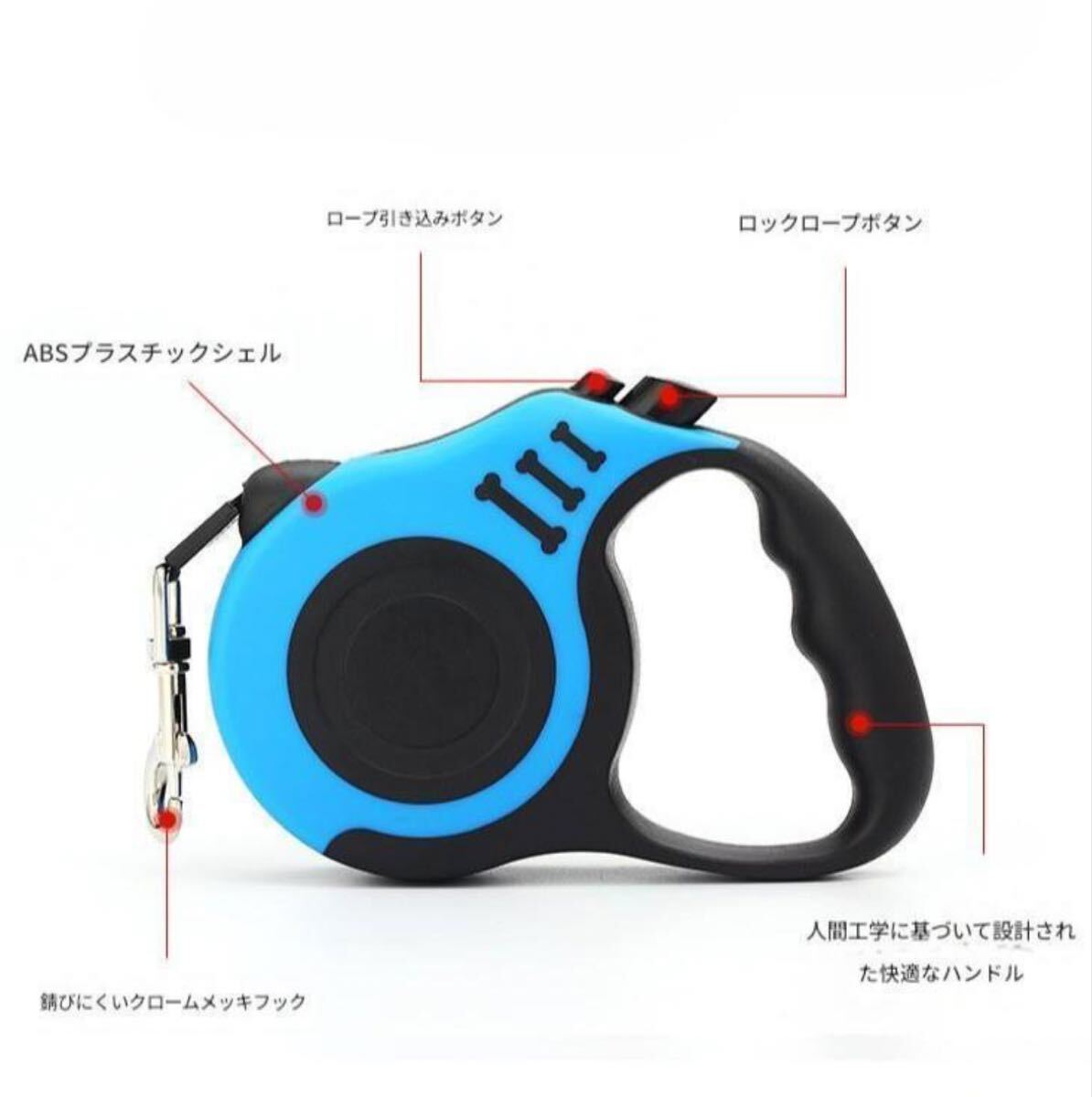 こちらは5m リード伸縮式 ペットロング 小型犬中型犬 軽量 ワンタッチロック 自動巻き取り ナイロンテープ リード 伸縮式 ペット 5m 青 ロング 小型犬中型犬 軽量 ワンタッチロックになります。