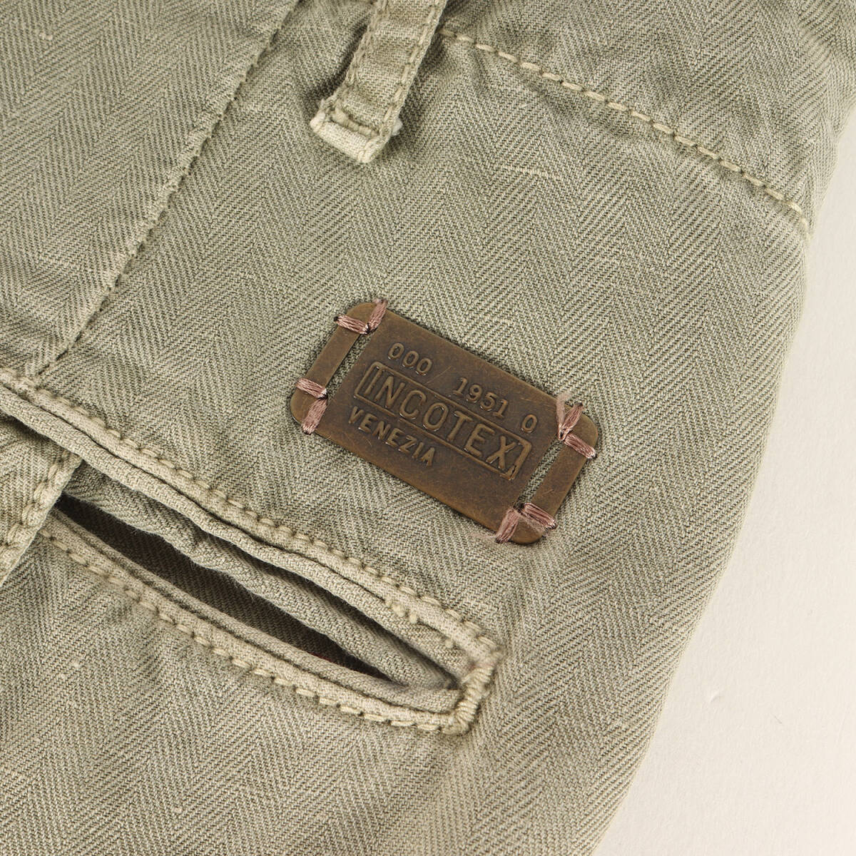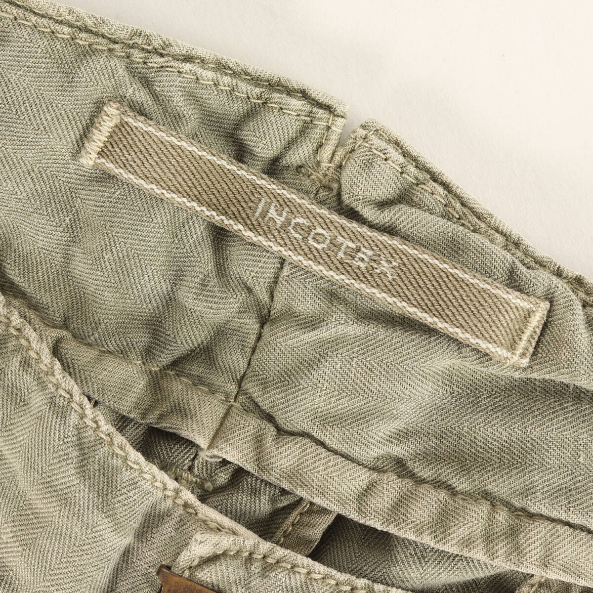 INCOTEX インコテックス パンツ カーキ サイズ:33 | サイドライン リネン混 ヘリンボーン スラックスパンツ (10A135 90830) | TAPEPED FIT 收藏