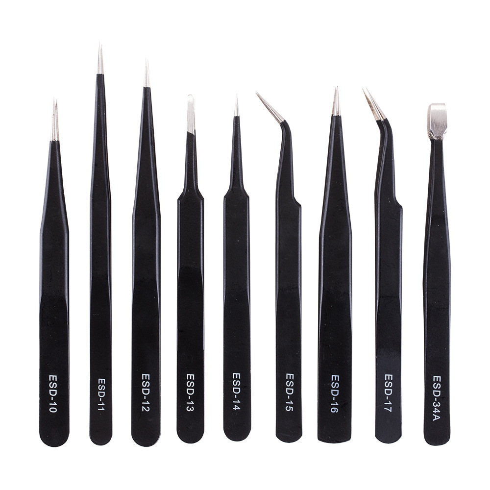 ピンセット 9本組 静電防止ツイーザー スマホ修理 精密作業用 收藏