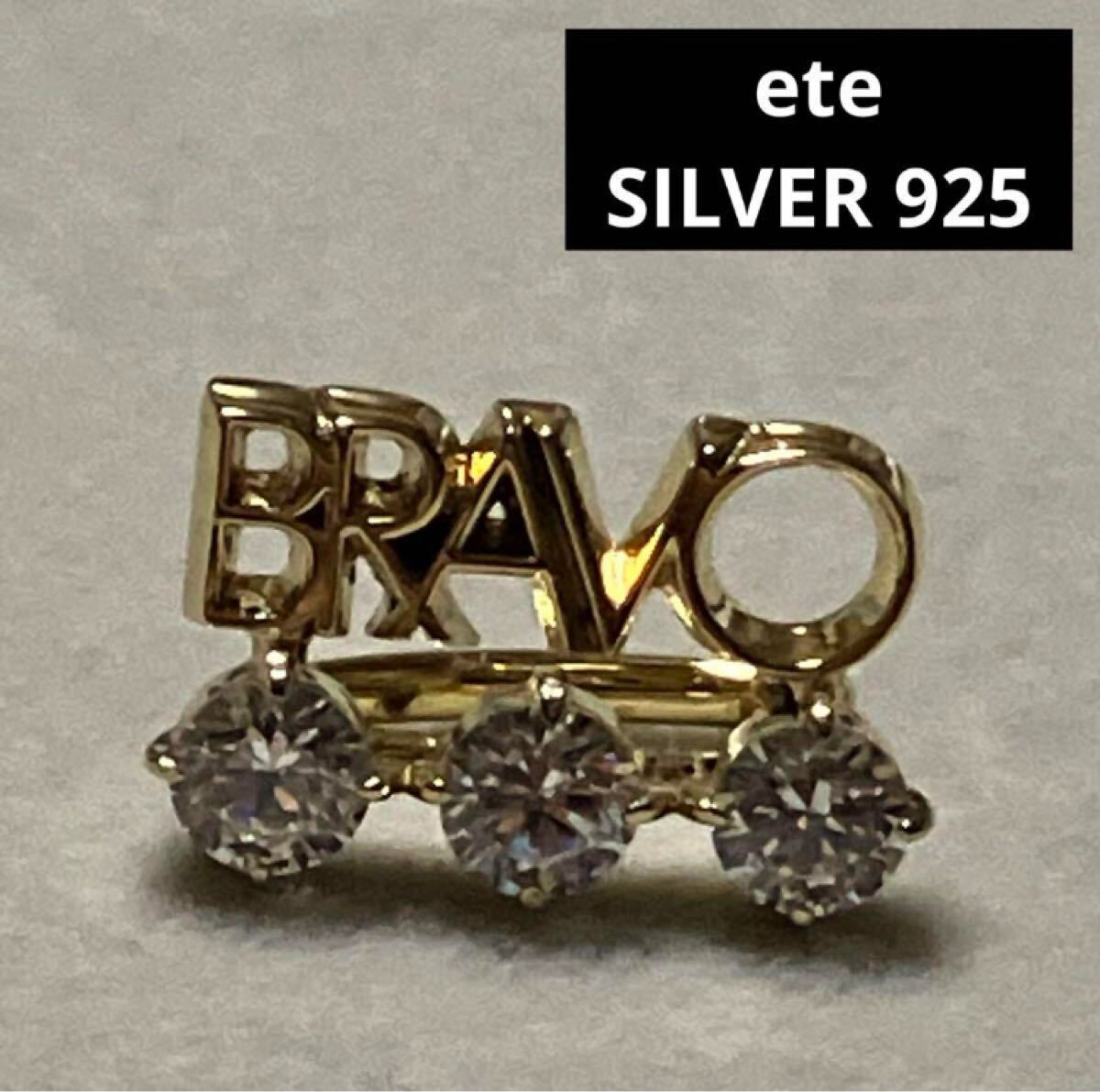 【m】美品 ete エテ SILVER 925 BRAVO イヤーカフ ゴールドカラー ジルコニア ストーン 收藏