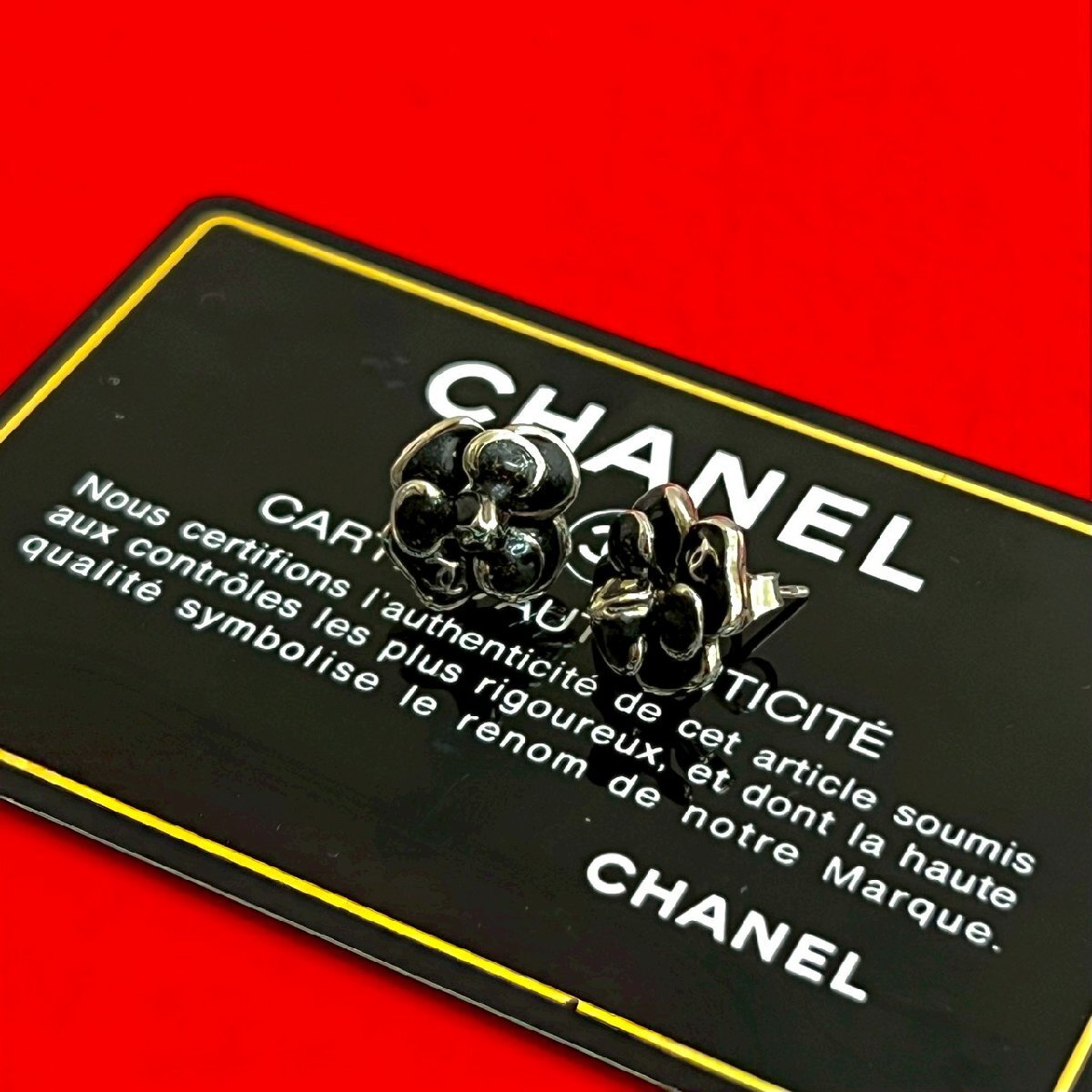極 美品 希少品 コメあり 08P CHANEL シャネル カメリア ピアス 合金 イヤーアクセサリー レディース シルバー ブラック 2052a 收藏