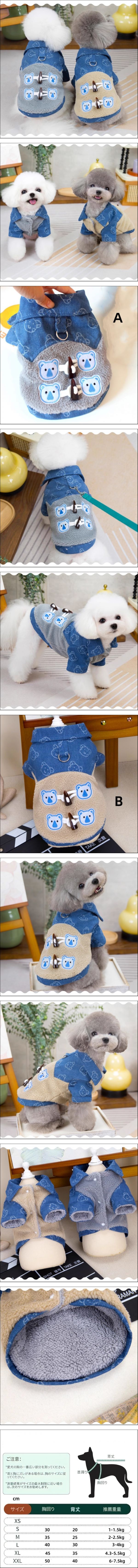 | 商品名 ペット服 デニムフリースジャケット ダッフルボタン付き 厚手綿入り 秋冬用 防寒 保温 小型犬 猫用 ドッグウェア おしゃれ 暖かい お散歩服 商品コード: STdg281 スタイル:A、B サイズ: S、M、L、XL、XXL ※ご購入の際は、取引ナビより必ず商品 スタイル、サイズ をご指定下さい。 商品について ※ 海外製品の為、若干の縫製の荒さ、糸くず等が見受けられます。検品は行っておりますが、稀に見逃して発送してしまう場合が御座います。商品に著しく影響を与えない場合は返品対象とはなりませんので、予めご了承願います。 ※ 運送や配送等で、表面に若干のスレや汚れ、キズがある場合がございますが、ご利用には支障がないかと思いますので、予めご了承お願いします。 ※ PC・環境・光の具合等により、色のイメージが画像と若干異なる場合が御座います。 ※ 平置き採寸となりますので、多少の誤差についてはご容赦下さい。 返品について ※ 不良品以外は交換、返品はできません。 犬服については衛生上の問題で、ワンちゃんに一度でも着せた洋服は返品、交換することができません。予めご了承ください。 | |||