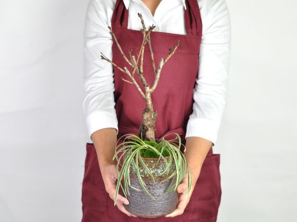 盆栽 桜 ミニ盆栽 桜盆栽 旭山桜と白竜の寄植え 信楽焼 茶窯変切立 4号 盆栽 花見 お祝い プレゼント ギフト 盆栽妙 收藏
