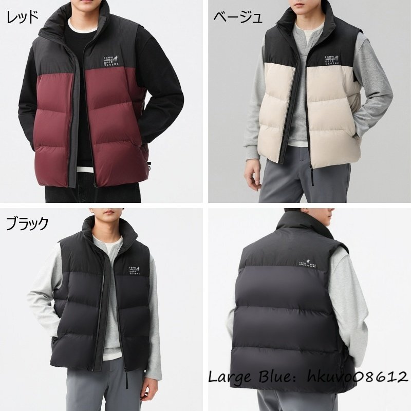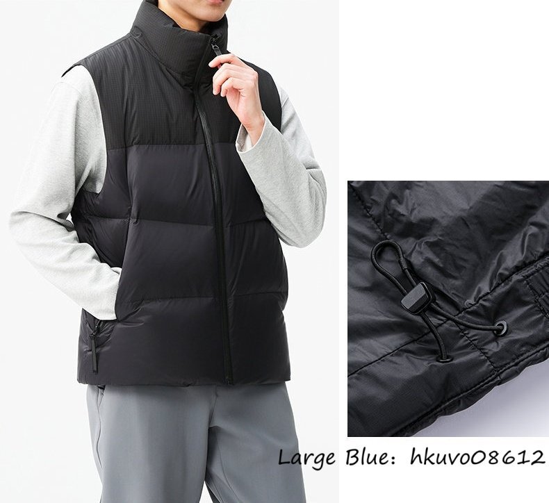 高級品◆ダウンベスト メンズ ダックダウン90% 保温 軽量 切替 防寒 防風 アウター 袖なし ジャケット 秋冬 個性 カジュアル ブラック L 收藏