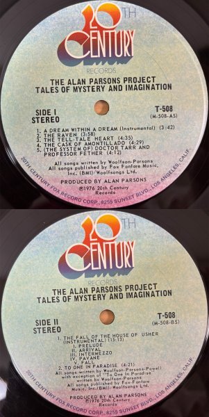 ●THE ALAN PARSONS PROJECT /Tales Of Mystery And Imagination 超音波洗浄済 ※米盤LP/初期盤/Gatefold/8P Booklet【 T-508 】1976年発売 收藏