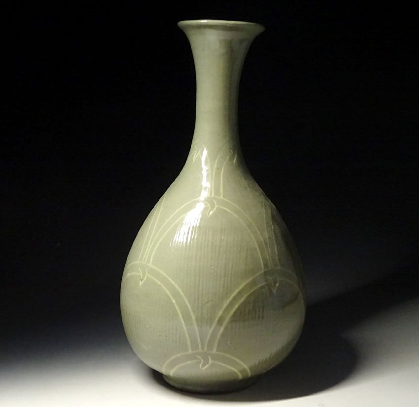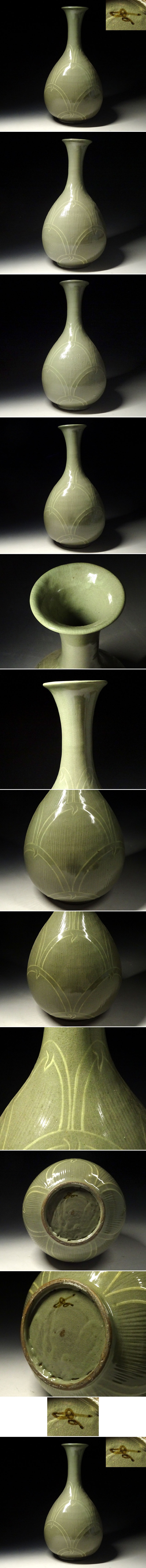 緑屋c■ 朝鮮美術 高麗青磁 象嵌 花瓶 朝鮮古陶 i9/10-6287/3-3#100 收藏