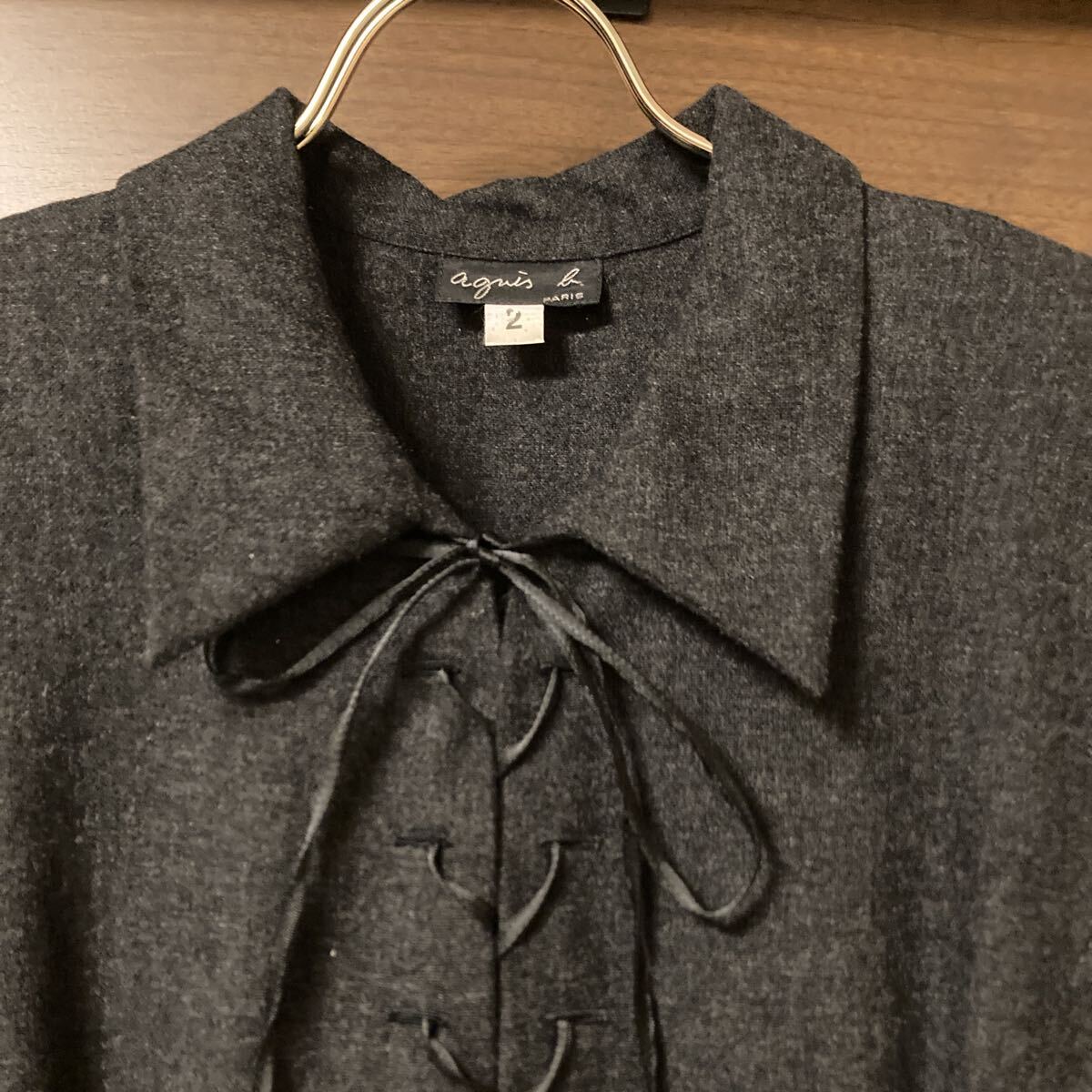 ★中古★agnes b.アニエス・ベー レトロデザインワンピース 長袖 チャコールグレー 2サイズ 收藏