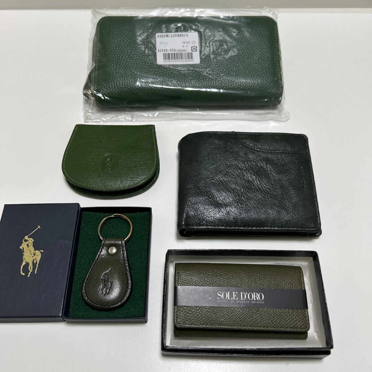 ☆美品☆ ◆グリーン系 財布&小物 本革 5点SET-未使用品あり◆ ポロ ラルフローレン キーホルダー ジルゴードン 等【送料無料】1022 收藏