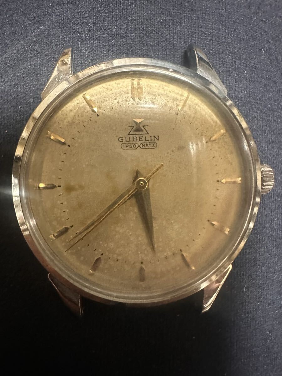 こちらはスイスの老舗時計店、ギュブランのオートマチックです。高級宝飾店が自社名にて製造した個体。他社製品に自社の名を入れるダブルネームも数多く見られますが、こちらにも長い間時計を扱ってきた老舗のセンスが光ります。サークルごとに異なる仕上げが施されたダイヤルは、当時の流行を取り入れた偶数部分がアラビアで奇数がドットのパターンで、その夜光は年月を経たものにしか出せない計算されたかのような絶妙な色合いです。| 出价者 | 信用 | 价格 | 时间 |