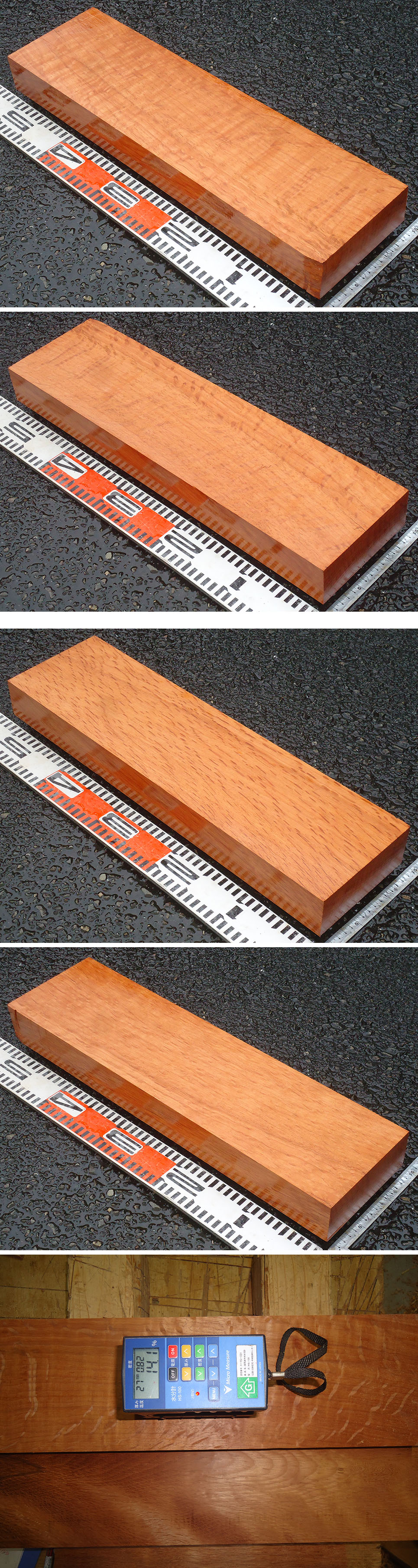 ・濃めの赤褐色、細かい樫杢入で見栄えある素材、欠点は少なめで歩留まりも良好だと思います。