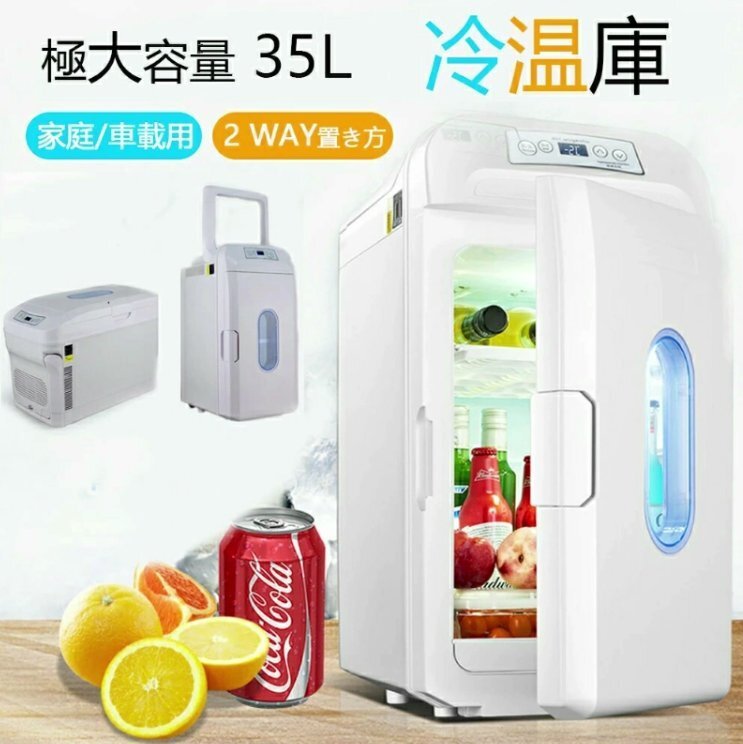 車載冷蔵庫 35l大容量 低温貯蔵庫 ポータブル冷蔵庫 一台両用 車載用家庭用 -18℃~65℃ 温度調節可 2WAY電源AC/DC 保冷保温両用ボックス 收藏