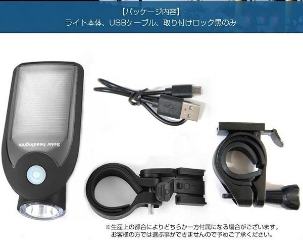 【vaps_2】自転車 ソーラー LEDライト 《ブラック》 太陽光 USB充電 ライトホルダー付 フロントライト ヘッドライト 前照灯 送込 收藏