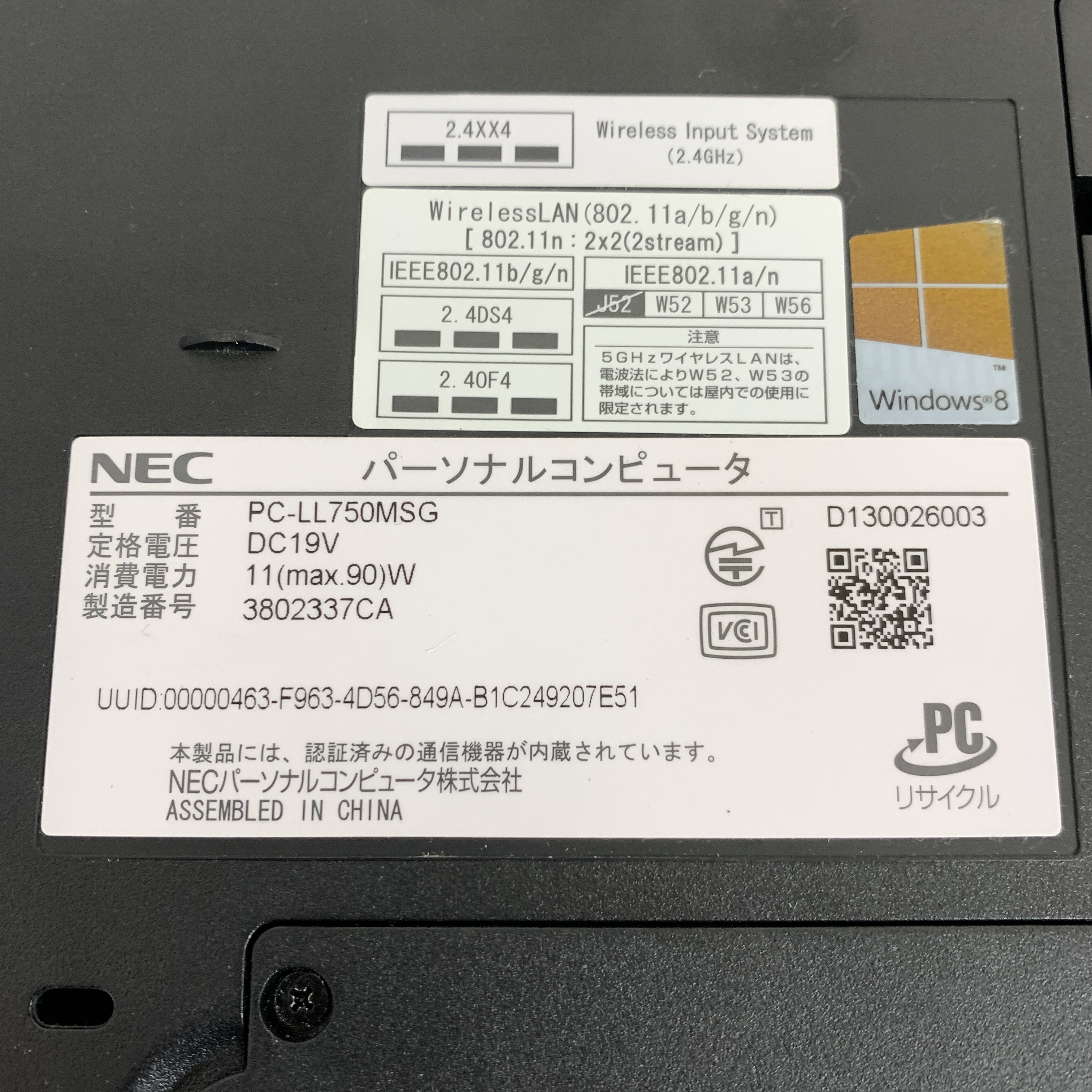 ノートパソコン NEC PC-LL750MSG Core i7-4700MQ メモリ8GB HDD1TB OS再インストール済 現状品 AMK864576相 收藏