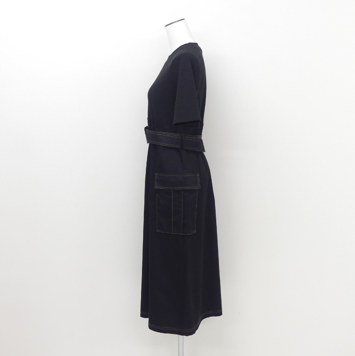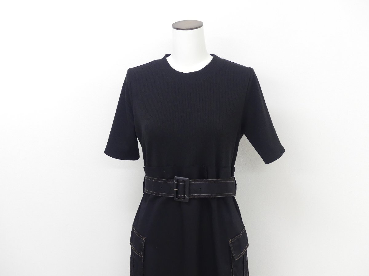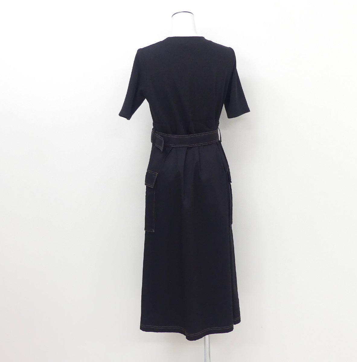 STRAWBERRY-FIELDS フレアワンピース F ブラック マキシ ロング ニット×布帛 切替 ベルト ポリエステルBLEND×コットンBLEND 收藏