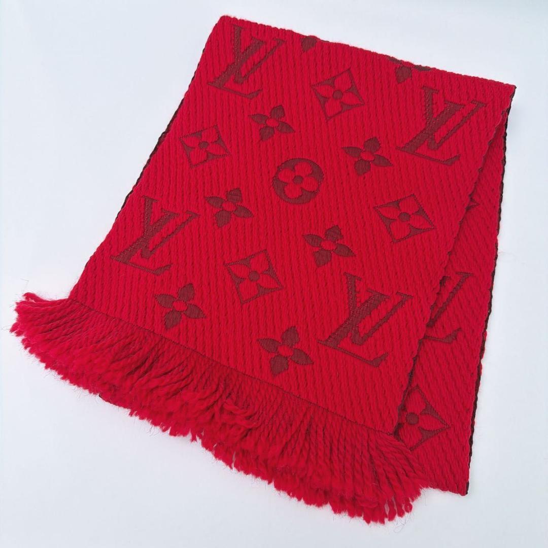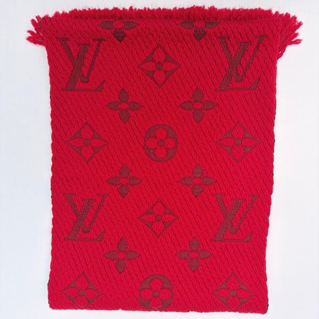 未使用保管品 ルイヴィトン エシャルプ・ロゴマニア マフラー ルビー レッド シルク M72432 防寒 レディース 收藏