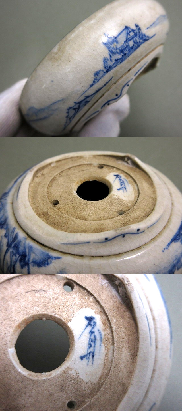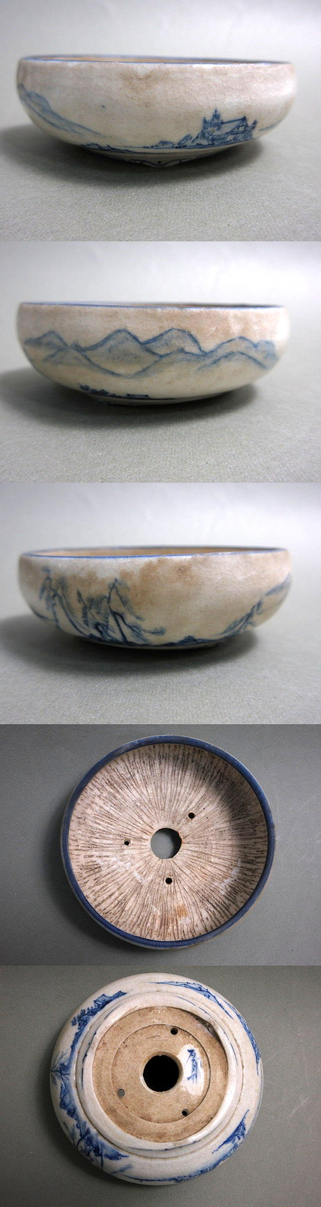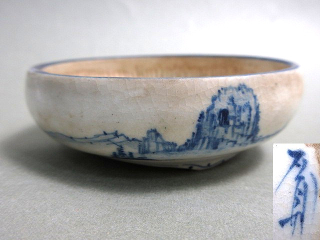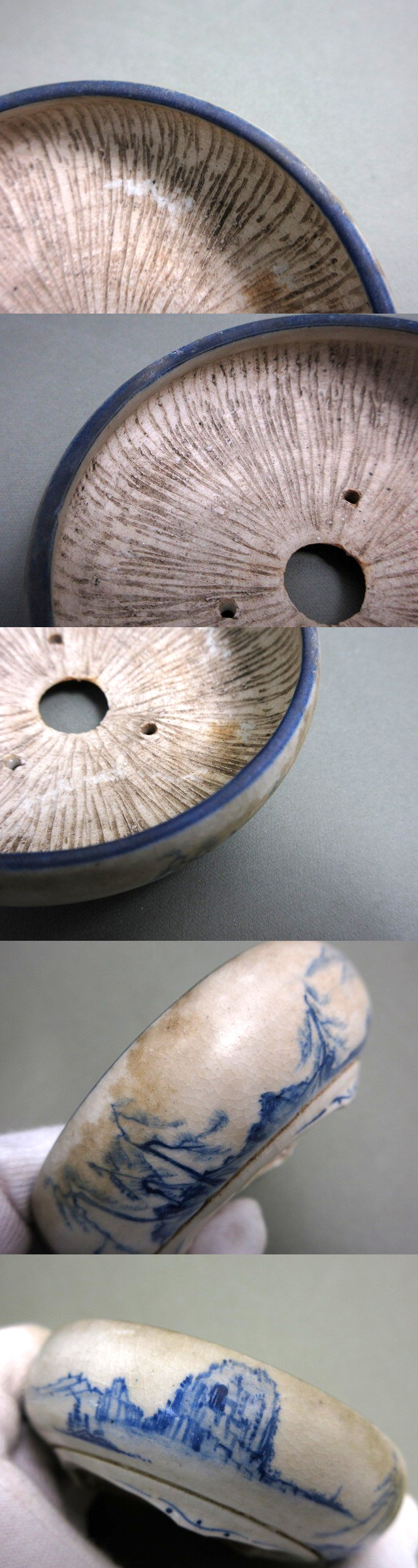 作家もの 染付 丸鉢 小品盆栽鉢 間口約7.7cm【説明欄に詳細写真有り】の出品です。