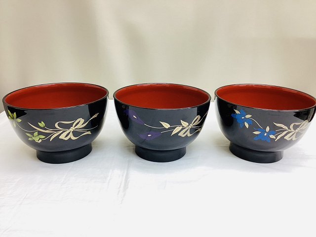 ★桂由美 漆器 お椀 丼ぶり 3点セット 直径14cm 高さ9cm 現品限り 管理番号N29402(2) 收藏