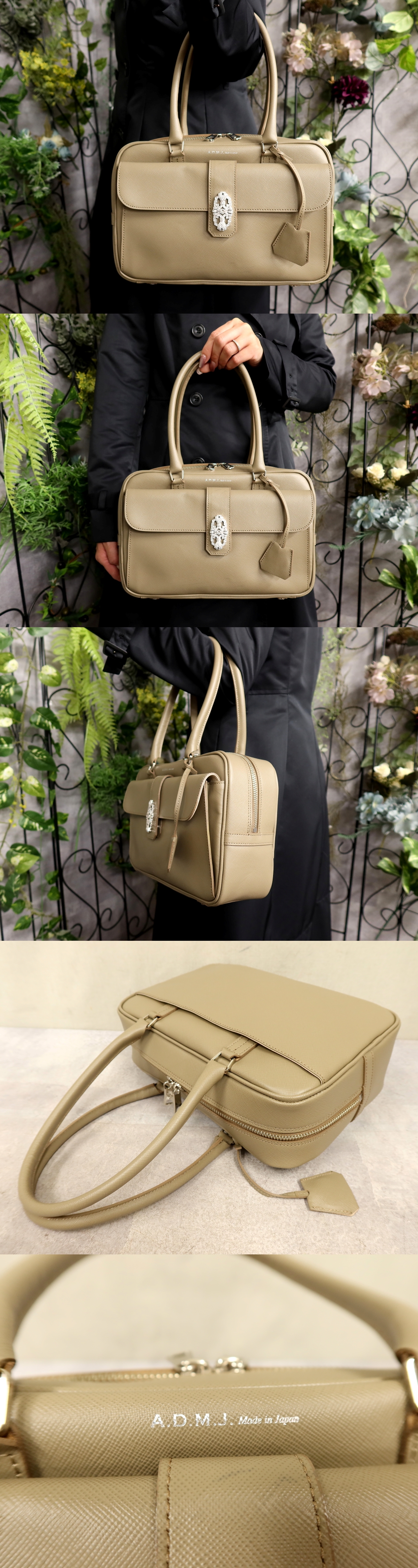 ●未使用 展示品●A.D.M.J エーディーエムジェイ●アールデコ●スワロフスキー●サフィアーノ レザー●ハンド バッグ●ベージュ系●Js61722 收藏