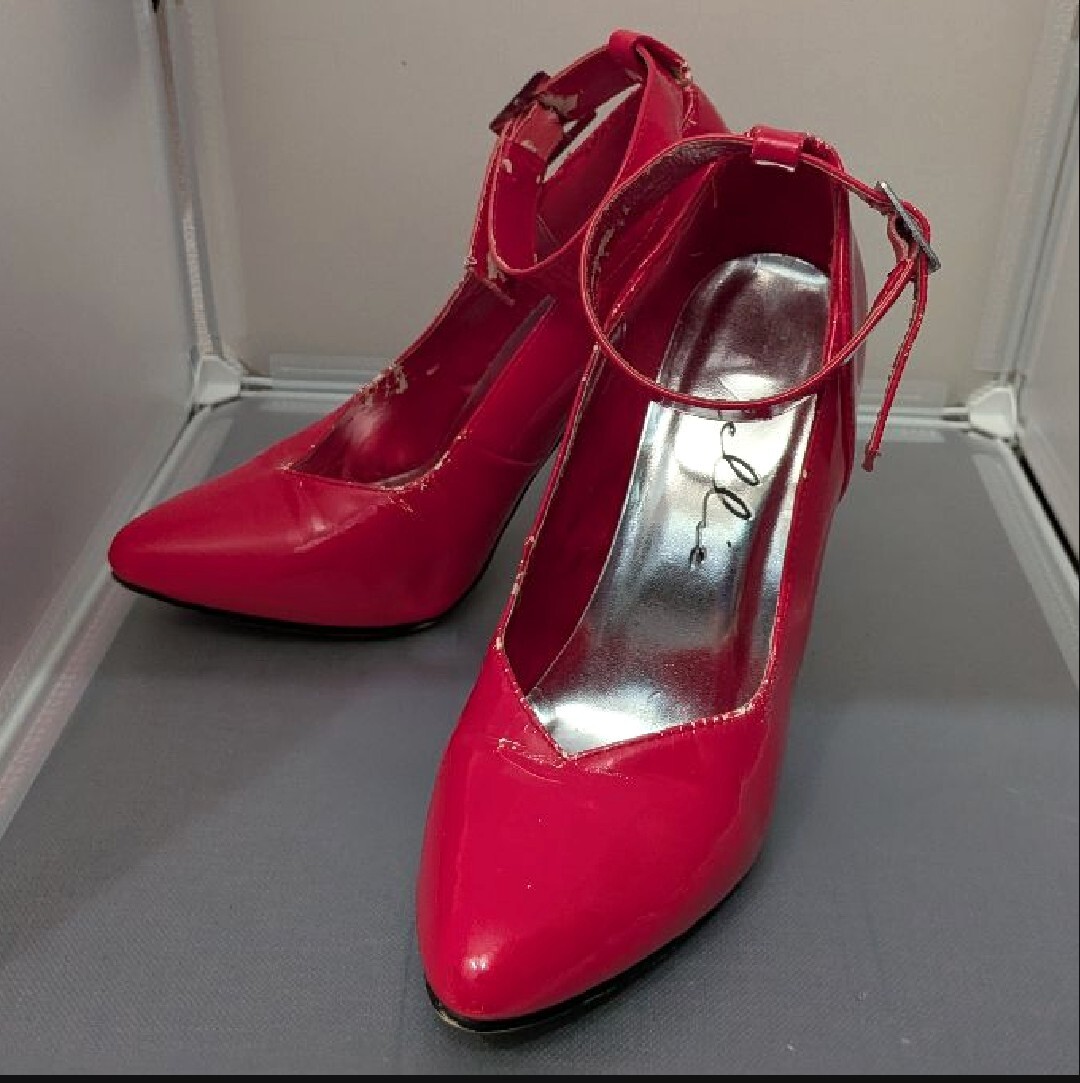 【ジャンク11】SizeUS9(26cm)ellie shoes エリー シューズ赤アンクルベルト付ハイヒール 收藏