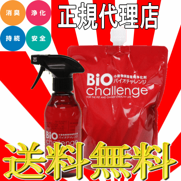 | 商品名 : PCS JAPAN バイオチャレンジ お試しセット 300mlスプレーボトル(そのまま使用)と、詰替用1Lボトル(2倍希釈使用 2L分)の1本づつのセット (合計スプレーボトル約8本分の内容量です。) 除菌・消臭はコレ1本でOK!!! シュッシュッとスプレーするだけのとってもお手軽な人気商品 バイオチャレンジです。 たくさんのペットオーナー様を初め、ブリーダーやペットショップ・美容学校・動物病院等、色々な業者様にもバイオチャレンジはお使い頂いております。日頃の衛生管理・持続・環境浄化におすすめの商品です。 浄化と消臭が可能なので一石二鳥!また、無臭無害!手あれもナシなので、普段頻繁に消毒されるスタッフの皆様にも非常に優しく出来ております。 ![]() ■■浄化・消臭・持続・安全!!!!衛生管理はこれで大丈夫!!!! ■■動物病院・ブリーダー御用達の1993年発売以来実績の信頼商品! ■■当店は価値ある正規代理店なので さ・ら・に・・・ご安心頂けますよ ■■ワンちゃん以外にも、ネコやウサギ等の小動物にもご使用頂けます。 当店は PCSJAPAN バイオチャレンジの正規代理店です。バイオチャレンジの使い方を初め、各ウイルスや病気に対するバイオチャレンジの処方もお気軽にご相談下さい。 パルボ・ジステンバ・ケンネルコフ等発生の秘密は厳守致します。 バイオチャレンジは目に見えない有機物に対して鋭く反応する特性を持っています。 ペットを守り、同時に消臭力に優れた飼育環境浄化剤です。毎日こまめに、ペットの部屋やペットが使う道具に噴射して清潔な環境を保持して下さい。全く薬害がないのが最大の特徴でペットが舐めても人間の皮膚や服についても全然問題ありません。 (激少ながら漂白作用がございますので、濃色の衣類等への噴霧及び濃色の体毛へのご使用はお止め下さい。) 刺激臭もなく、ステンレス機材等を錆びさせる事もないうえ、スプレーするだけで拭き取りもいらないので直接ゲージ・トリミング台・トリミング機器・食器・玩具・タオルや洋服・ワンコの肛門・足・耳や、仔犬を触る前の手にシュシュッとかけて、自然乾燥するだけのお手軽さが魅力です。一度お試し下さいませ… 1)バイオチャレンジは飼養環境を浄化し、大切なペットの健康を守ります。 2)ウィルス・カビ・雑菌からペットを守る!浄化・消臭・安全!衛生管理はバイオチャレンジで大丈夫! 3)バイオチャレンジはペットの消臭効果にも優れた力を発揮します。 ■■ バイオチャレンジの働き