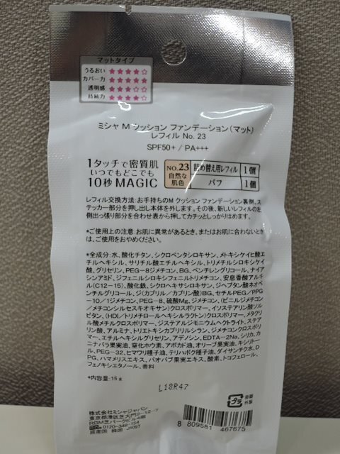 | MISSHA ミシャ MAGIC CUSHION MAT マジック クッション ファンデーション(マット) レフィル No.23 15g/未開封品 | ||||