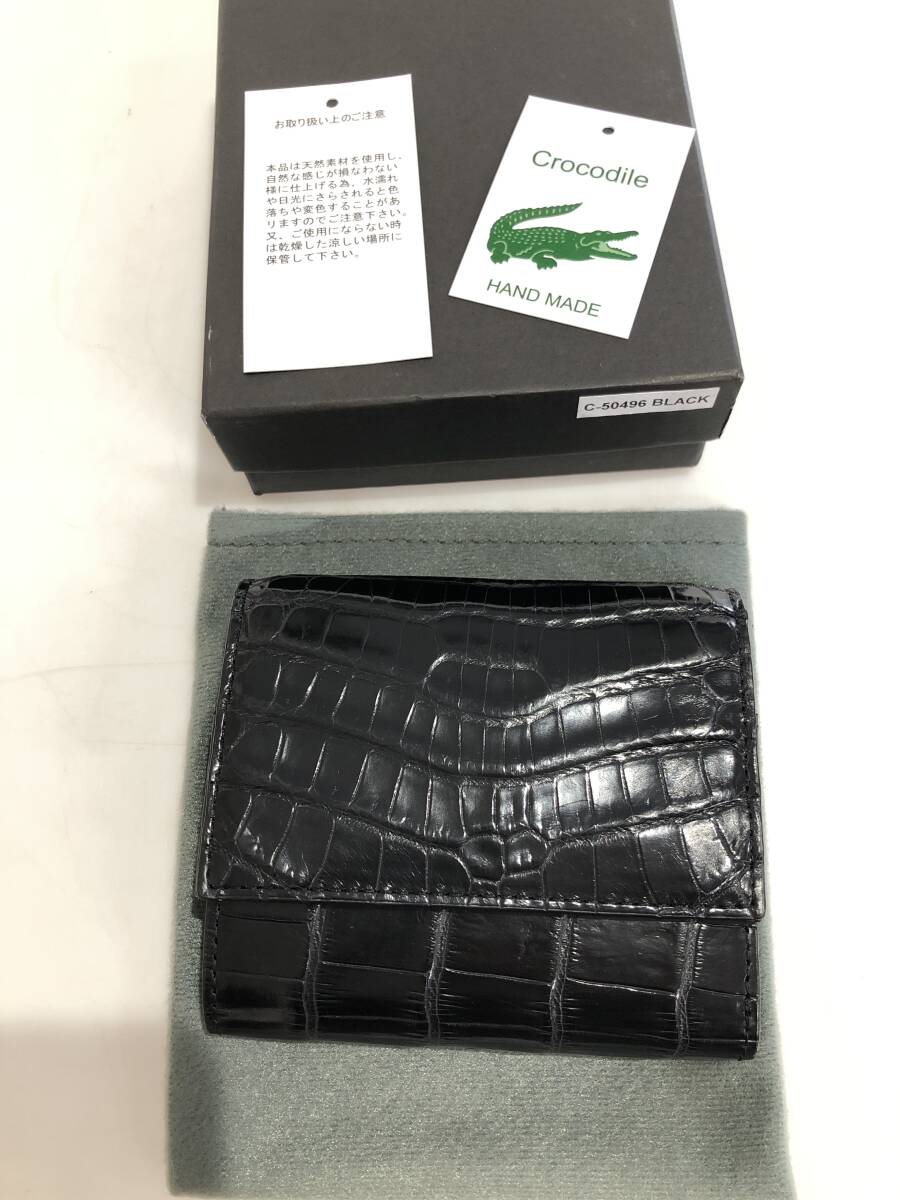 HB5177 クロコダイル 財布 小銭入 カード入 ワニ革 三つ折り財布 レザー 箱付き 未使用品 收藏