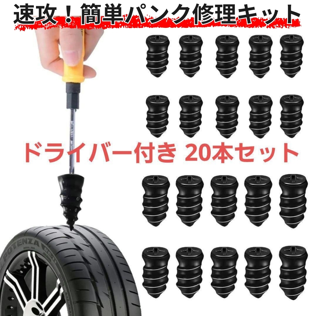 パンク 修理 キット ラバーネイル ドライバー付き ケース付 簡単 時短 短時間 大小 20本 応急処置 タイヤ修理 交換 セルフ DIY 車載工具 收藏