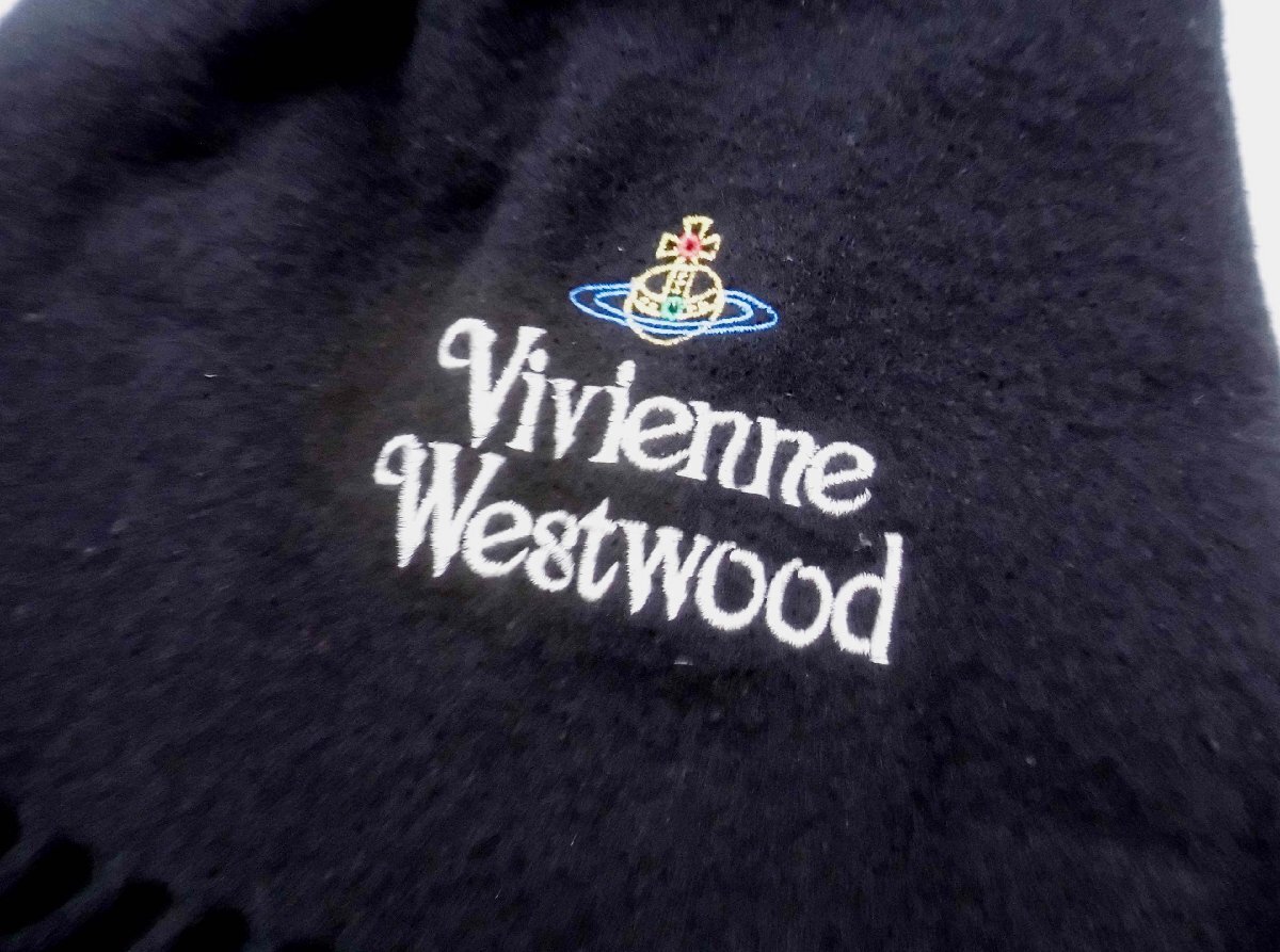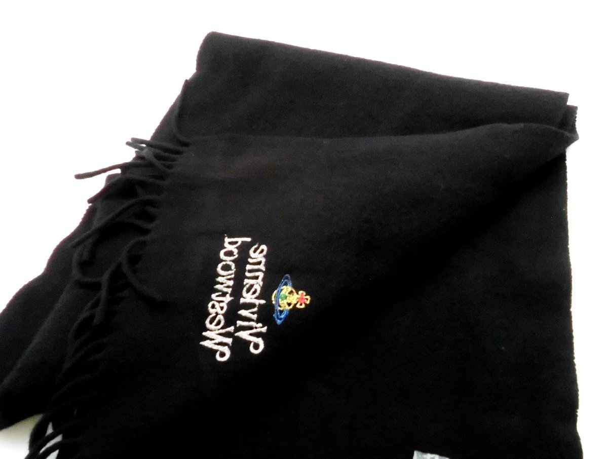 □viviennewestwood ヴィヴィアンウエストウッド ラナウール 100% マフラー オーブ 刺繍 ブラック□/F 收藏