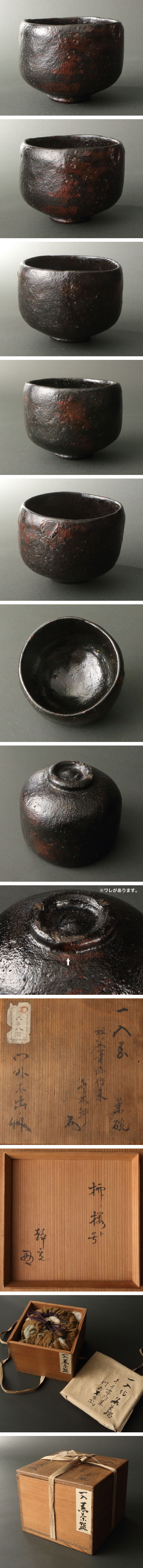 【模写】委託HK◇樂一入 朱釉黒楽茶碗 静定箱書 冬木家伝来「柳桜」※仕覆添え(茶道具 陶磁器 陶芸 京焼 楽焼 千家十職 春 茶事 茶席 ) 收藏