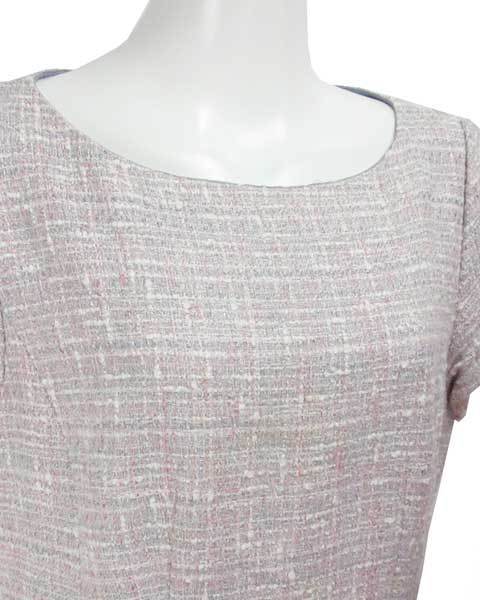 | 淡いピンクの上品なツィードワンピース。ラメが入っていて、華やかな雰囲気があります。飽きのこないシンプルなデザインなので、長く着て頂けます。春先から秋口まで活躍してくれます。 |