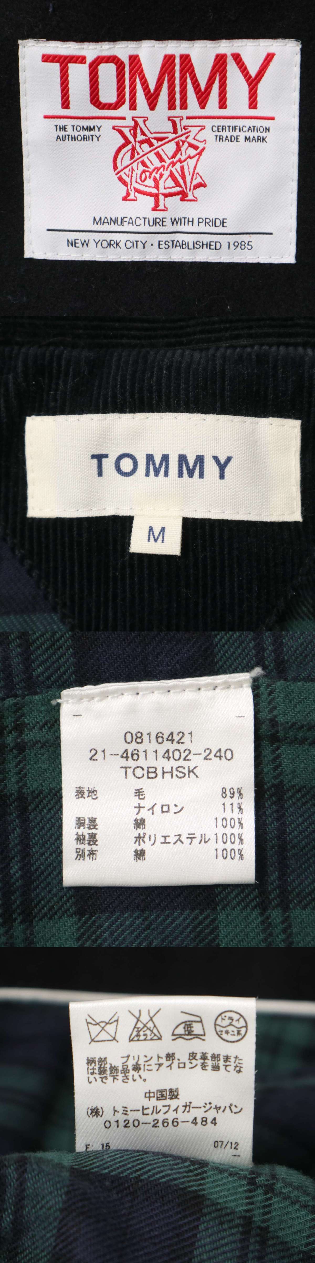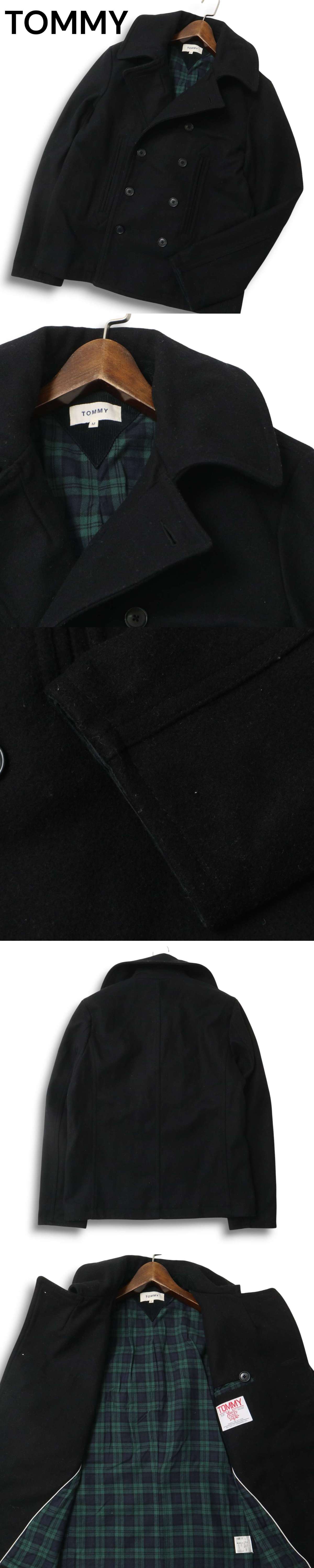 TOMMY トミー ヒルフィガー 秋冬 メルトン ウール★ 裏地タータンチェック Pコート Sz.M メンズ 黒 收藏