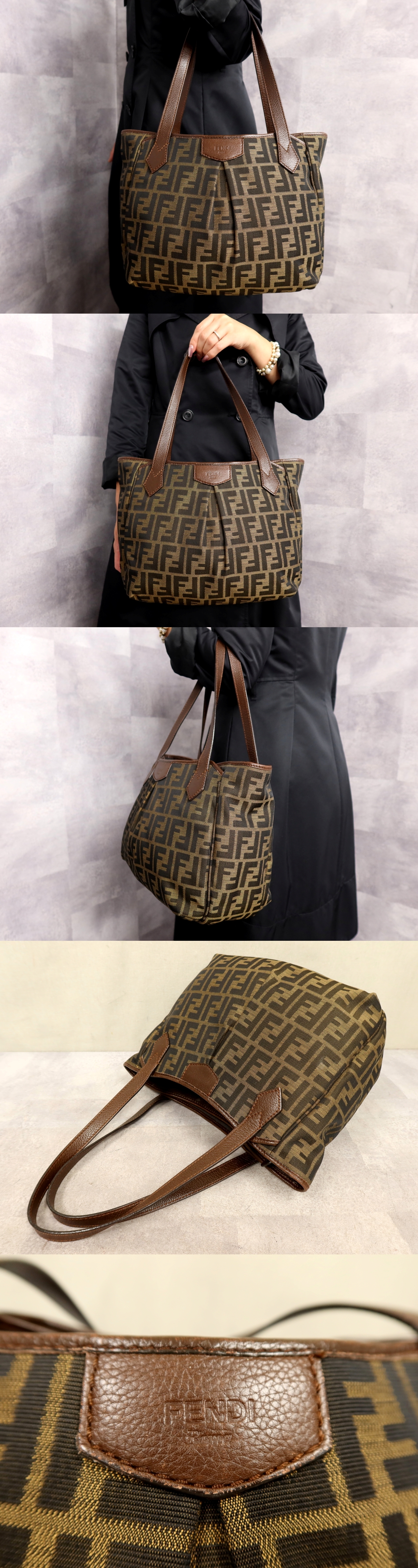 ●超美品●FENDI フェンディ●ズッカ●ロゴ型押し●キャンバス カーフ レザー 本革●トート バッグ●ブラウン 黒●B5 収納 かばん●Js61886 收藏