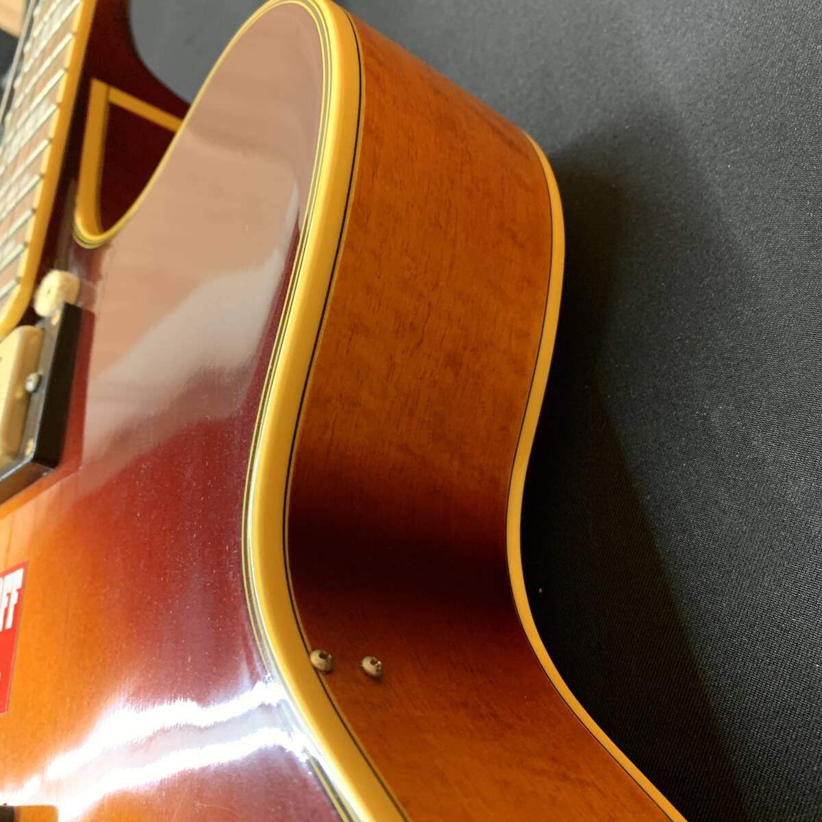 ボディは各部パーツが劣化しており、ホール内ラベルとピックガードが欠品、電装系も故障しておりますので音が出ない状態ですが、ペダルチューナーに繋いだ際には僅かに反応がございました。