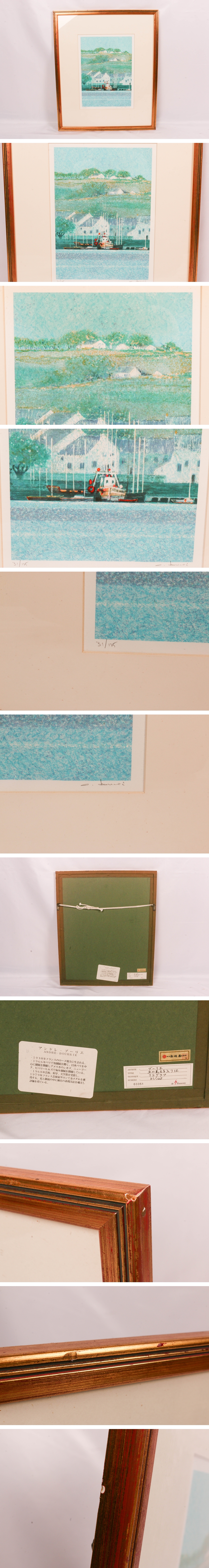 【SAG】Andre Bourrie アンドレ・ブーリエ『丘の見える入り江』31/125 リトグリフ 直筆サイン 額装 本物保証 收藏