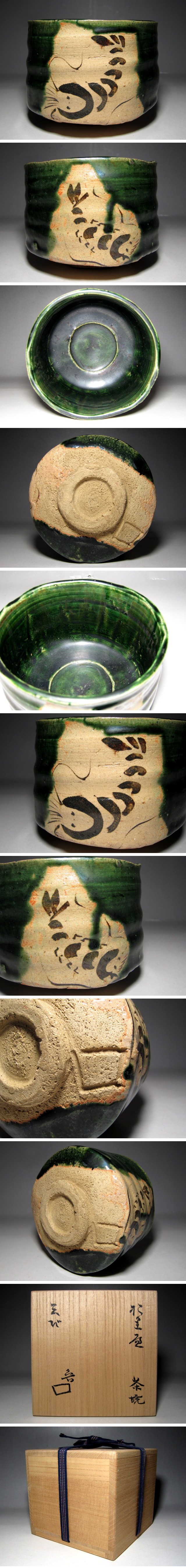 北大路魯山人 エビ絵 織部茶碗 可愛らしい絵付け m39 收藏