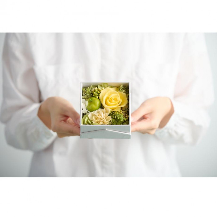 | 青リンゴがアクセントになっている爽やかなアレンジボックスです。 |