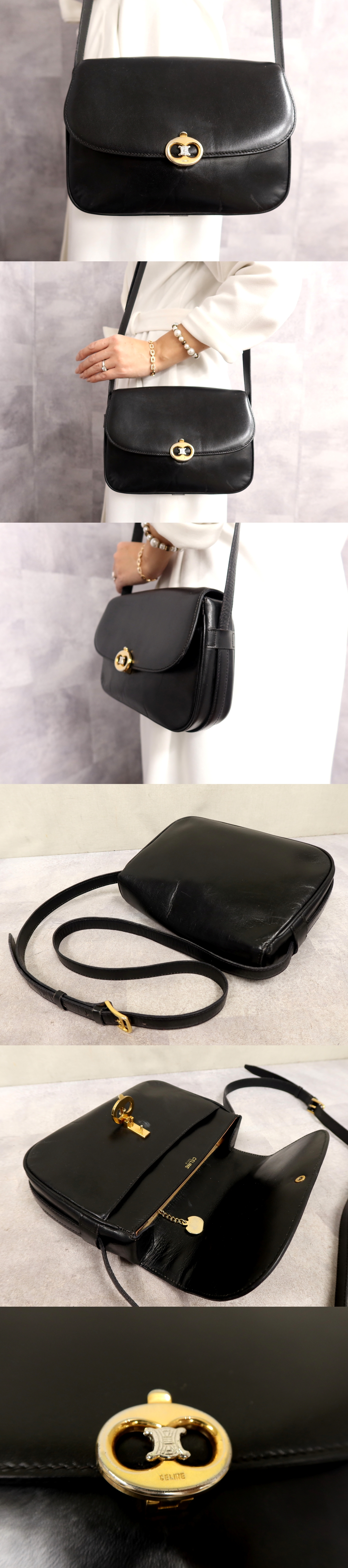●超美品●CELINE セリーヌ●カーフ レザー 本革●ショルダー バッグ●黒●ゴールド金具●斜め掛け●ヴィンテージ●収納 かばん●Js63218 收藏