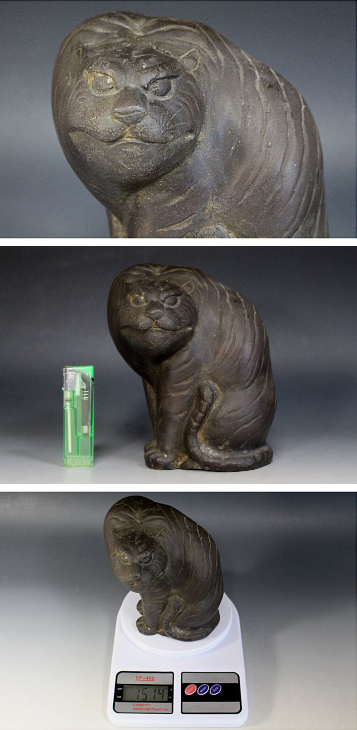 虎 置物 李朝民画 李朝虎 朝鮮美術 民画 時代物 鵲虎図 検)古銅 金工 ブロンズ像 銅製 古美術 寅 とら トラ 收藏