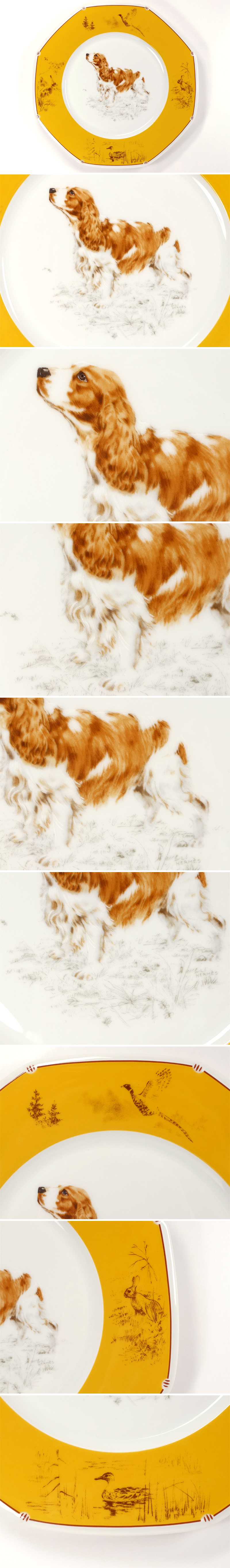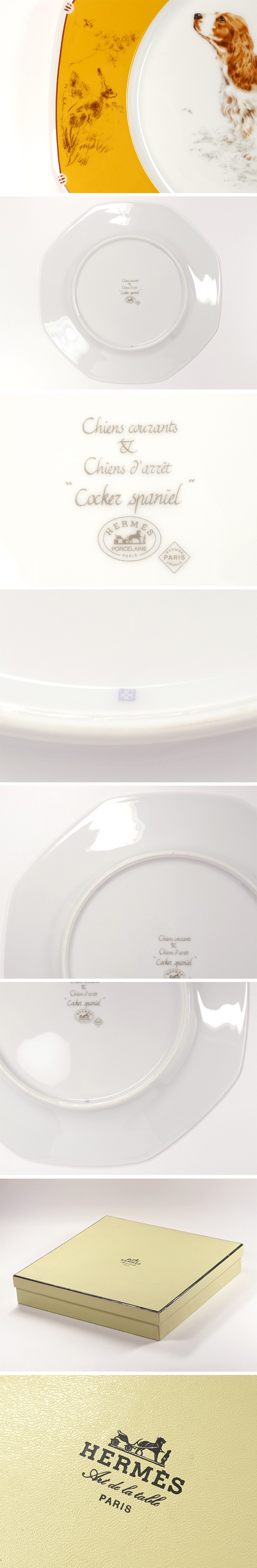 ∇花∇【エルメス/HERMES】 シャス(Chasse) 狩猟犬モチーフの八角プレート26cm コッカースパニエル イエロー 純正BOX付 高級テーブルウェア 收藏