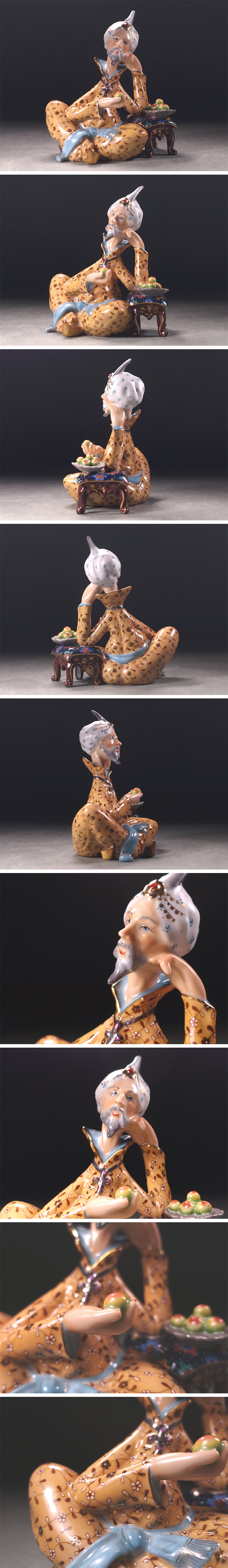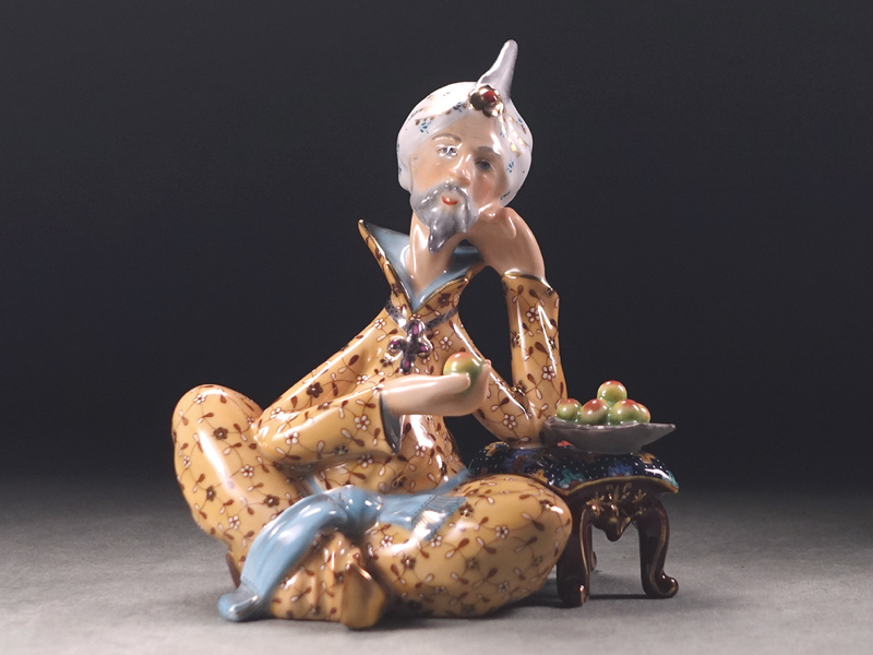 ∇花∇【ヘレンド/Herend】 マスターぺインターの傑作 ペルシャの密画(MP) ペルシアン磁器人形「食べる人」 異国情緒溢れるフィギュリン 收藏