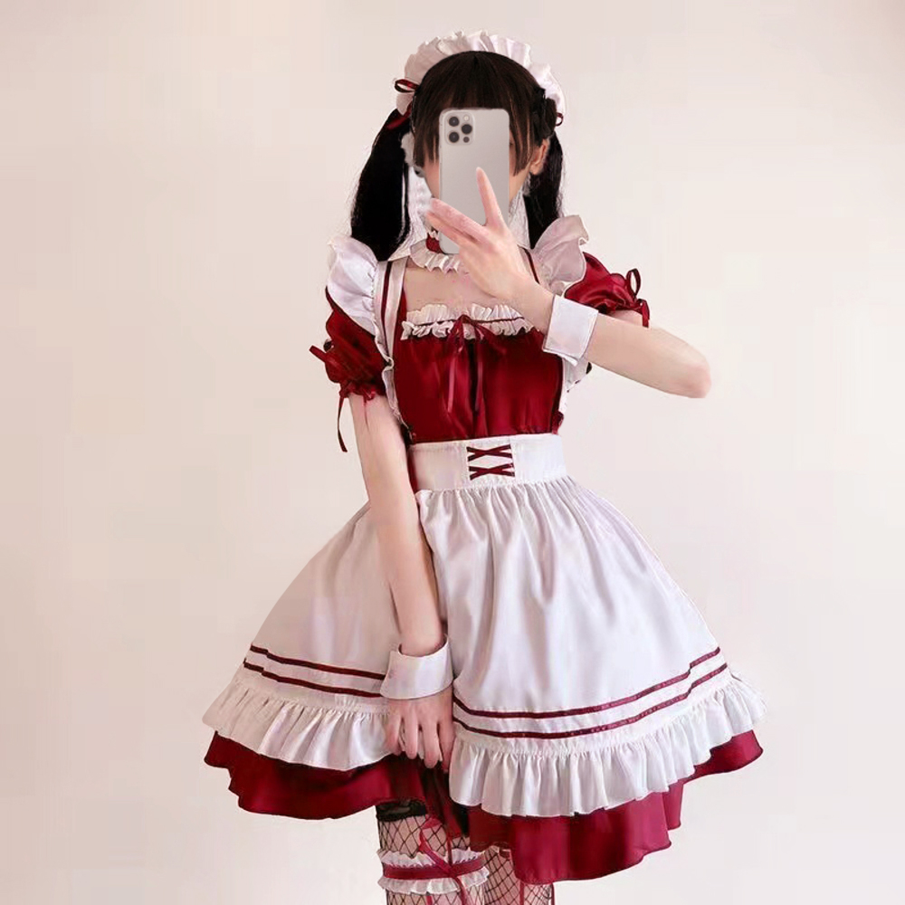 ☆ ワイン×ホワイト ☆ 2XLサイズ ☆ メイド服 kcos02 メイド服 可愛い コスプレ 衣装 女性 ワンピース ドレス メイド 半袖 ミニスカート 收藏
