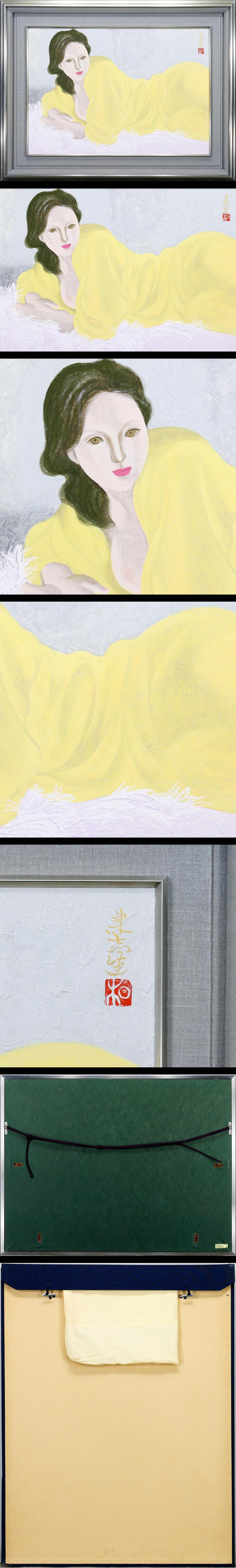 【真作】【WISH】室井東志生 日本画 15号 大作 金落款 金泥仕様 ◆横たわる白肌の裸婦 〇日展理事 師:橋本明治 総理大臣賞 #25123470 收藏