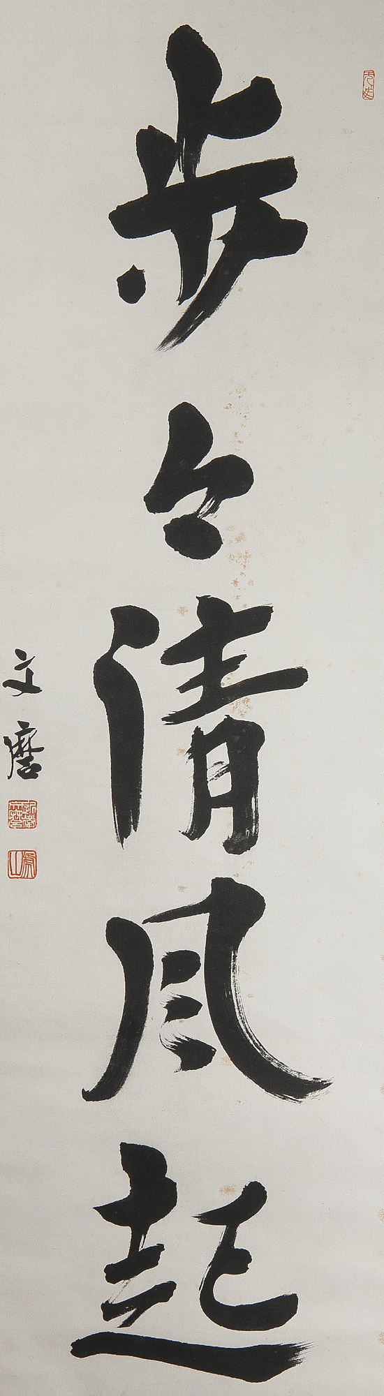 【五】貴族政治家 近衛文麿 一行書 『歩々清風起』 紙本 墨 掛軸 箱付 二重箱 茶掛 真作 收藏