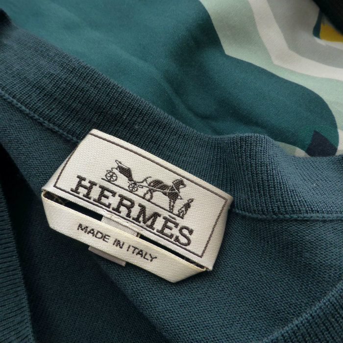 エルメス (HERMES) ウール ニット シルクスカーフドッキング トップス M グリーン ウェア メンズ(中古) 收藏