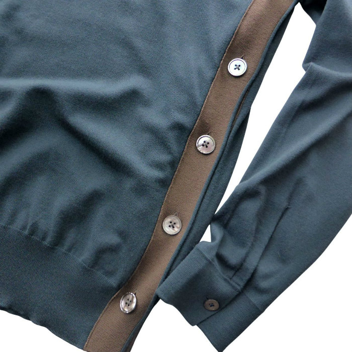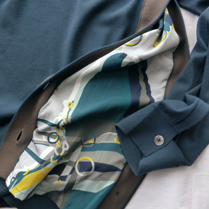 袖口のニット生地で作られたシャツのようなカフスなどシンプルながらもデザイン性が光る逸品です。