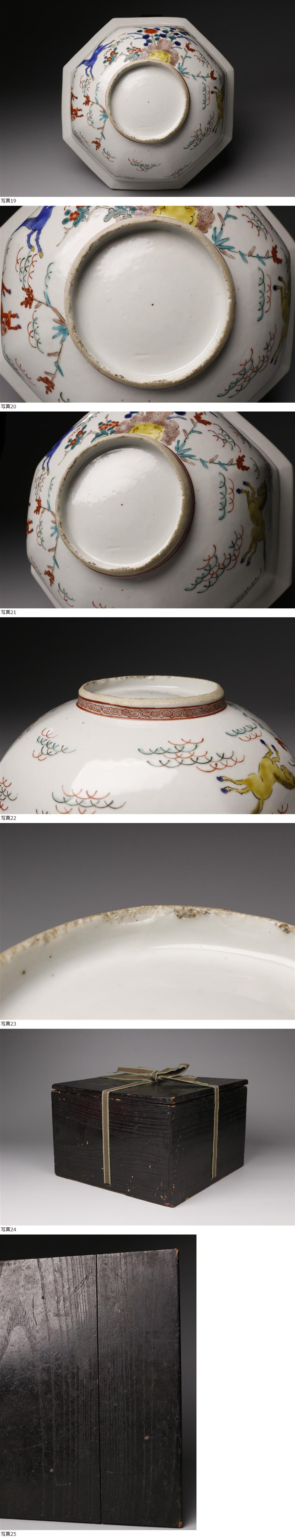 【LIG】江戸時代 柿右衛門様式 色絵 麒麟鳳凰草花文八角鉢 古美術品 旧家蔵出品 2601152 收藏
