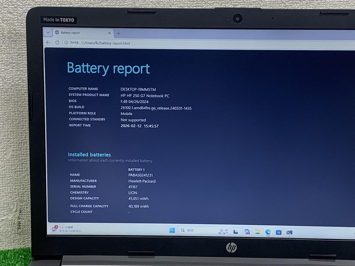 HPノートパソコン HP 250 G7 NOTEBOOK PC i7 第8世代 インテル Core i7 8565U メモリ8GB NVMe 256GB 15.6 インチ TOKYO 中古 LAPTOP