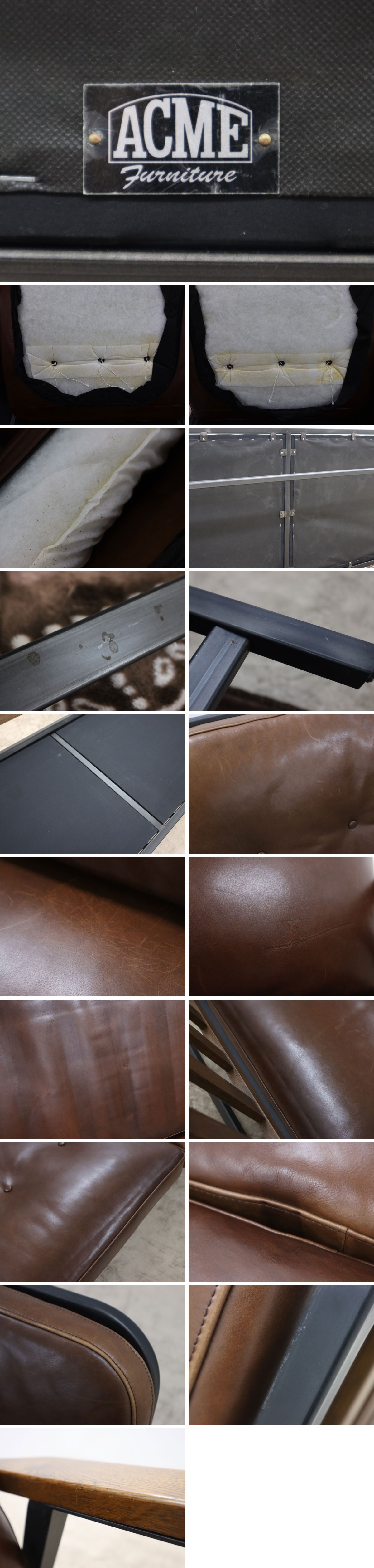 傷、僅かな汚れ、擦れ、設置痕、クッションの変形、革の剥がれ、金属部の色ムラ、中材にのりの痕は御座いますので画像にてご確認ください。